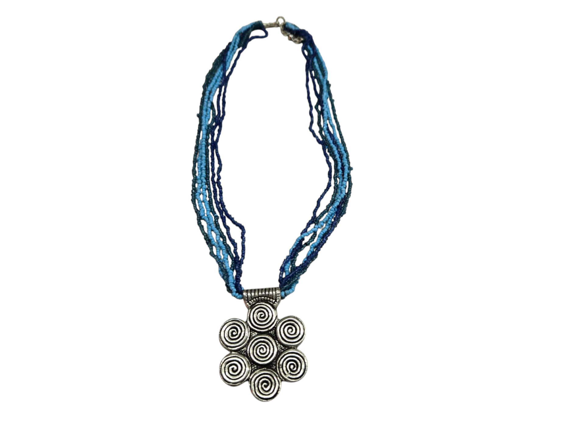 Pendant multispiral metal turq.
