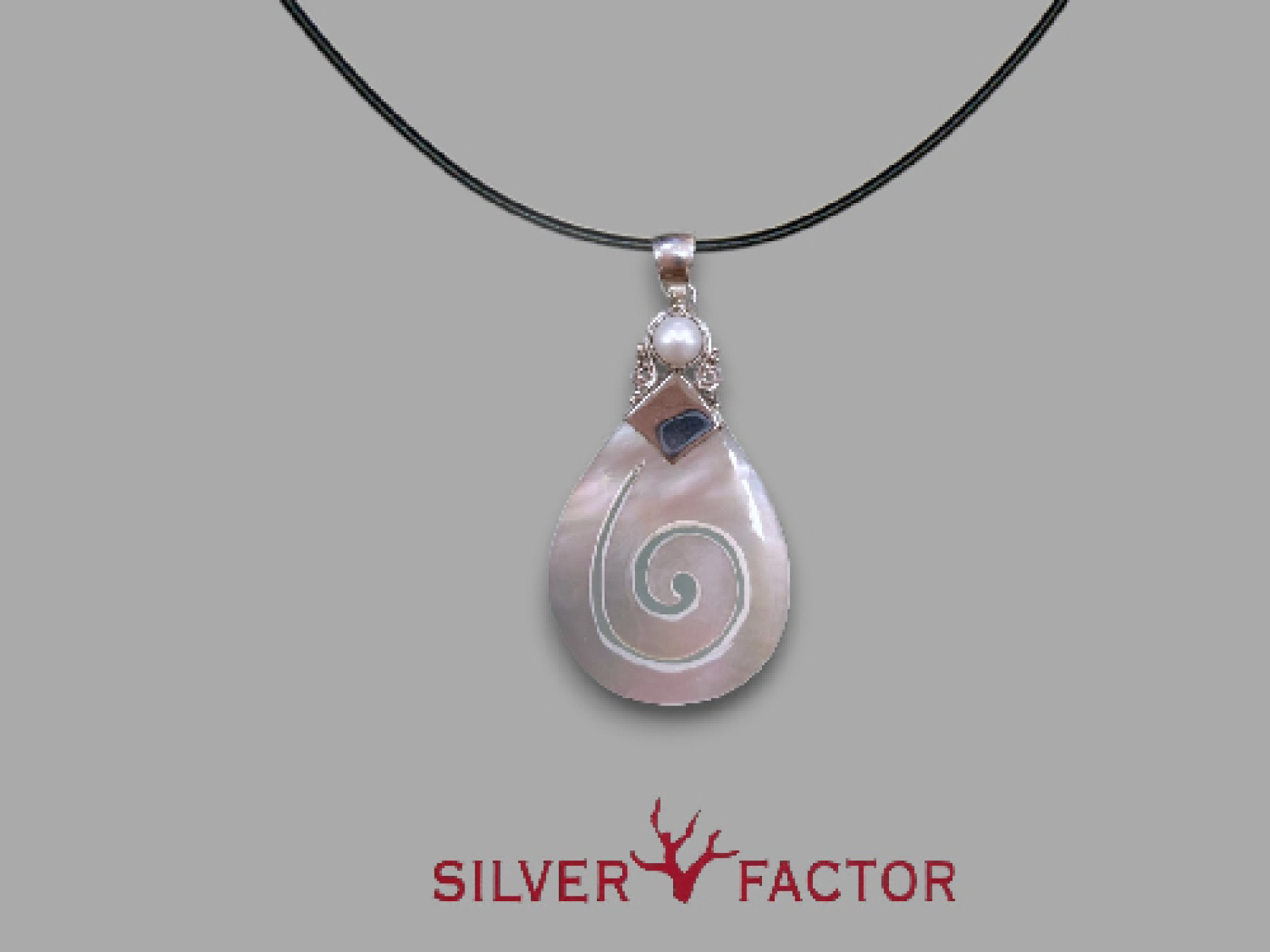 Colgante ag. mop-perla lagrima espiral 50x30mm
