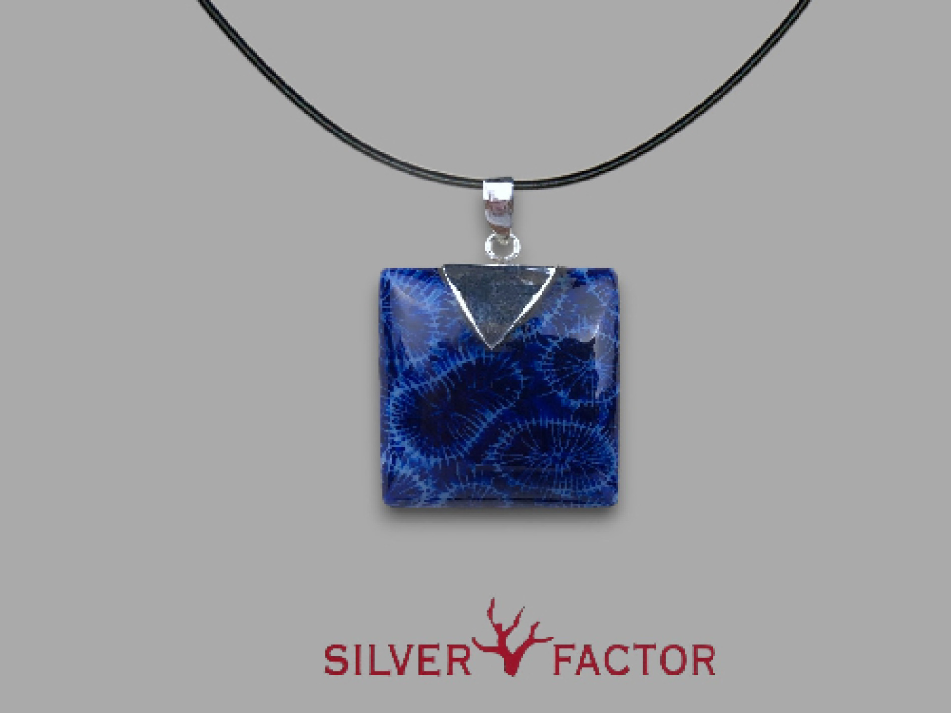 Colgante gorgonia azul cuadrada ag.30x30mm